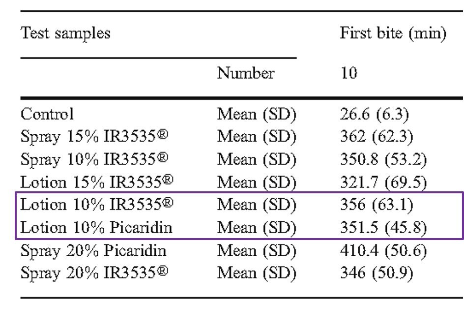 文献:Field evaluation of the efficacy of proprietary repellent formulations with IR3535® and Picaridin against Aedes aegypti